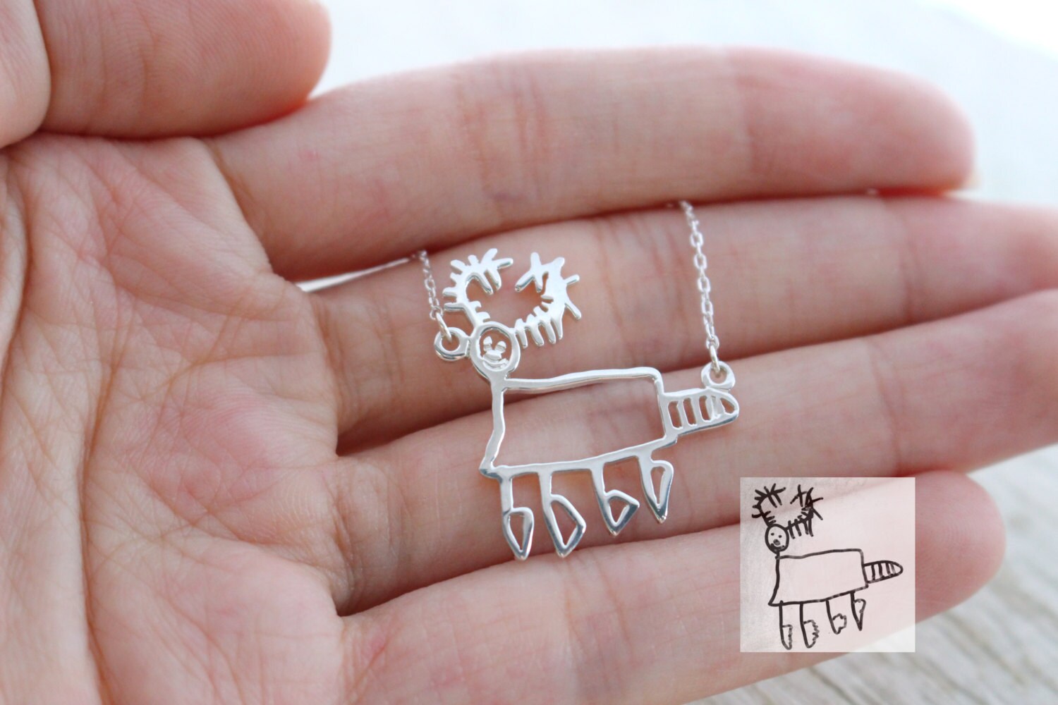 Children's Drawing Necklace • Kid's Art Necklace • Personalized Sterling Silver Necklace • Child Artwork • Gift for Mom and Grandma • NH01