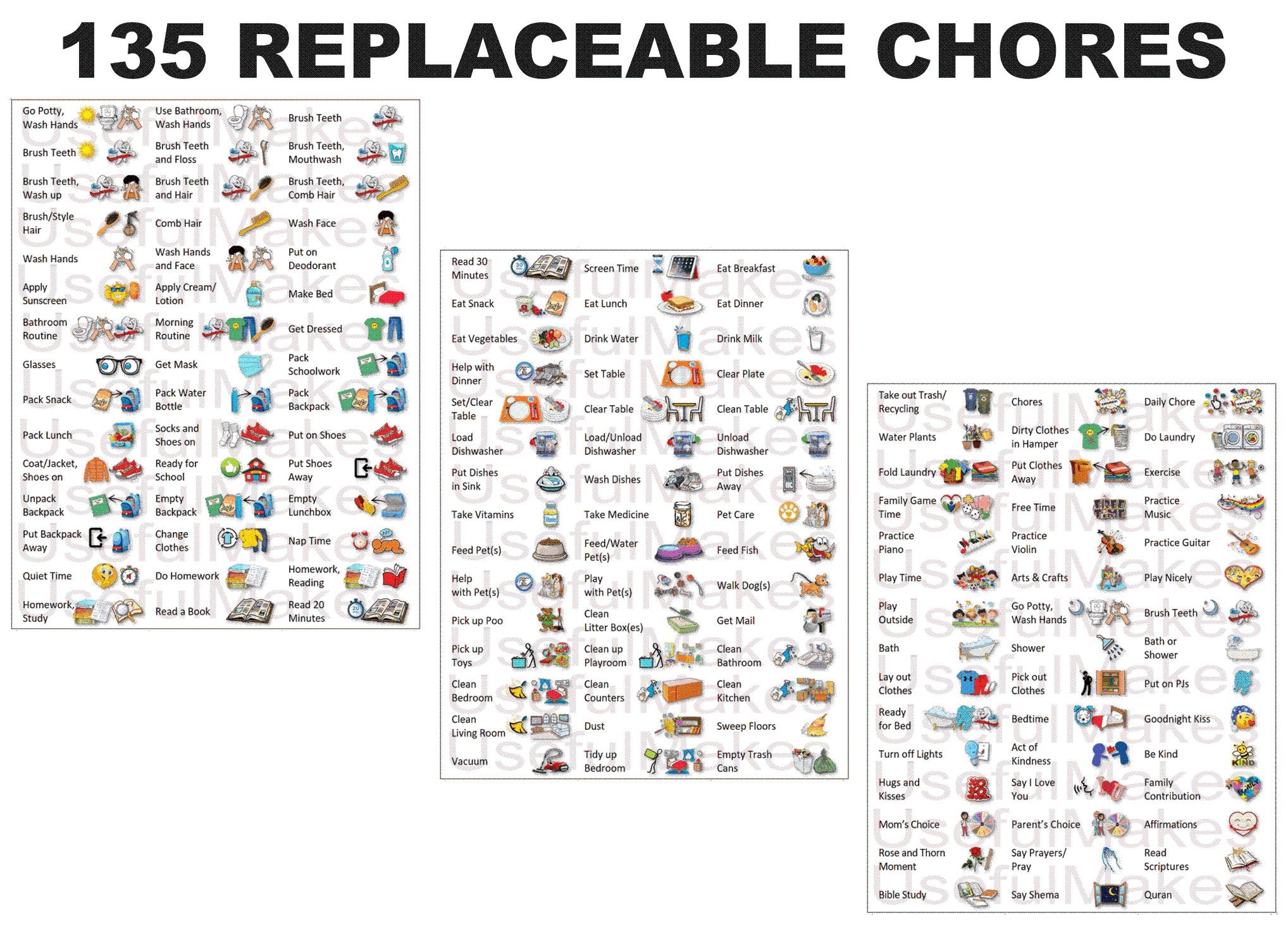 REPLACEABLE CHORES CHECKLIST, Individually Replaceable Chores, Chore Chart, Task Board, Daily Routine, Daily Tasks - Magnetic