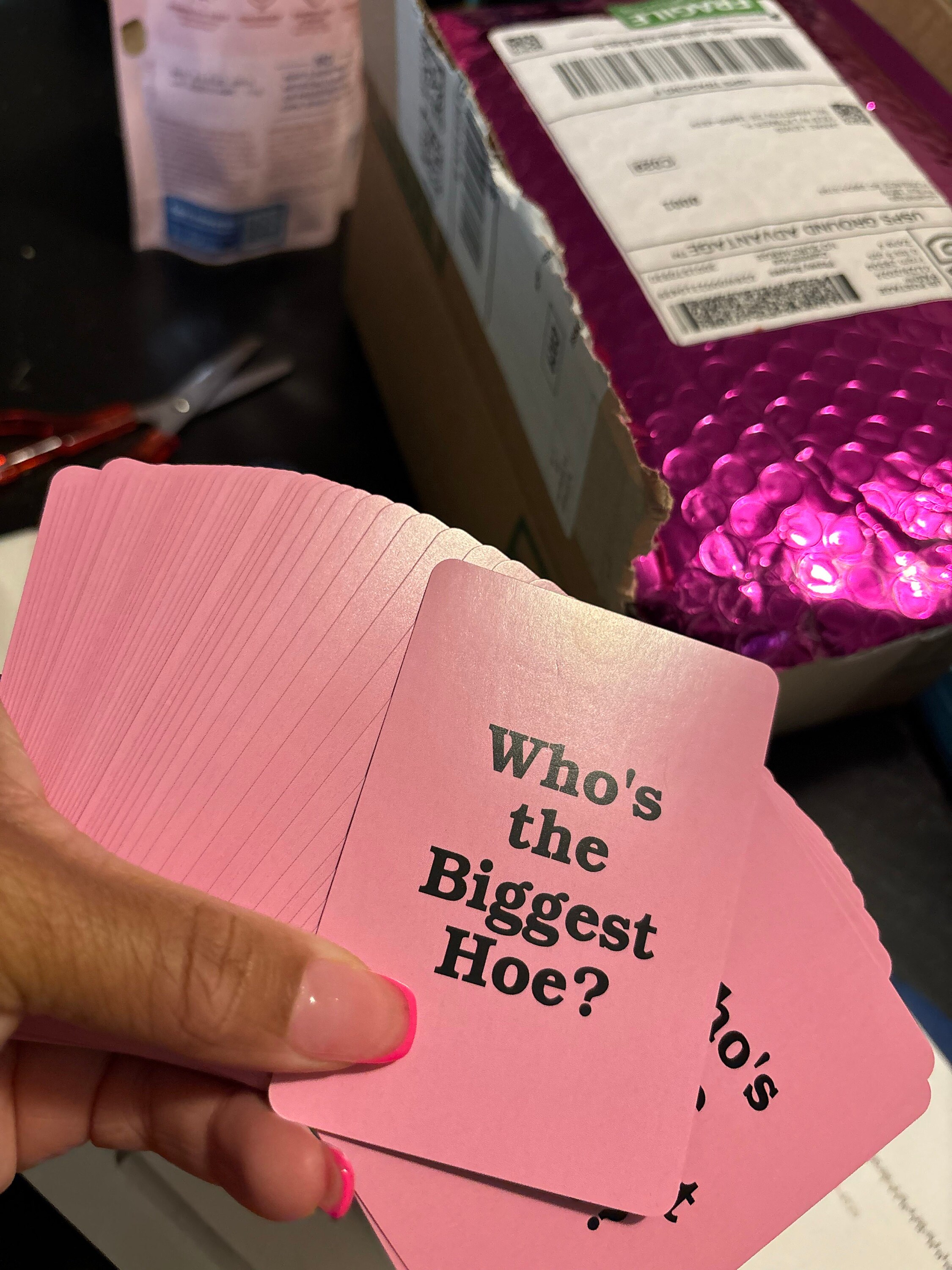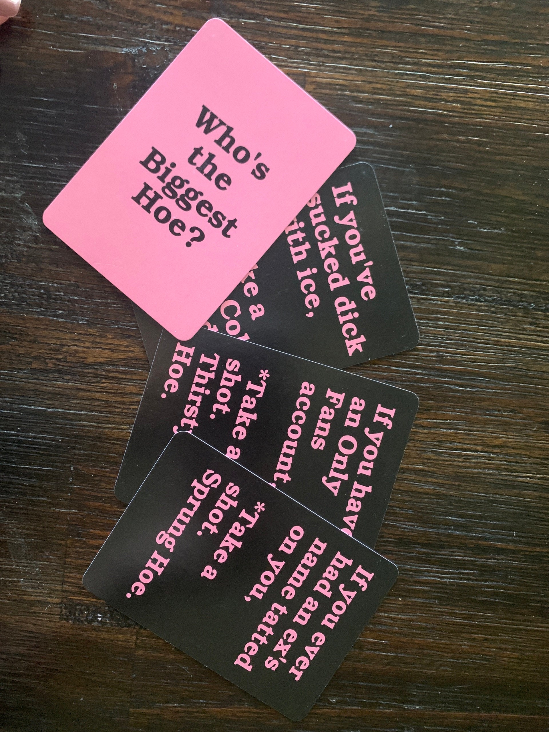 Who's The Biggest Hoe?-adult card game,drinking game,card game,ladies night game,kickback games,adult games,girls night in game,shot game